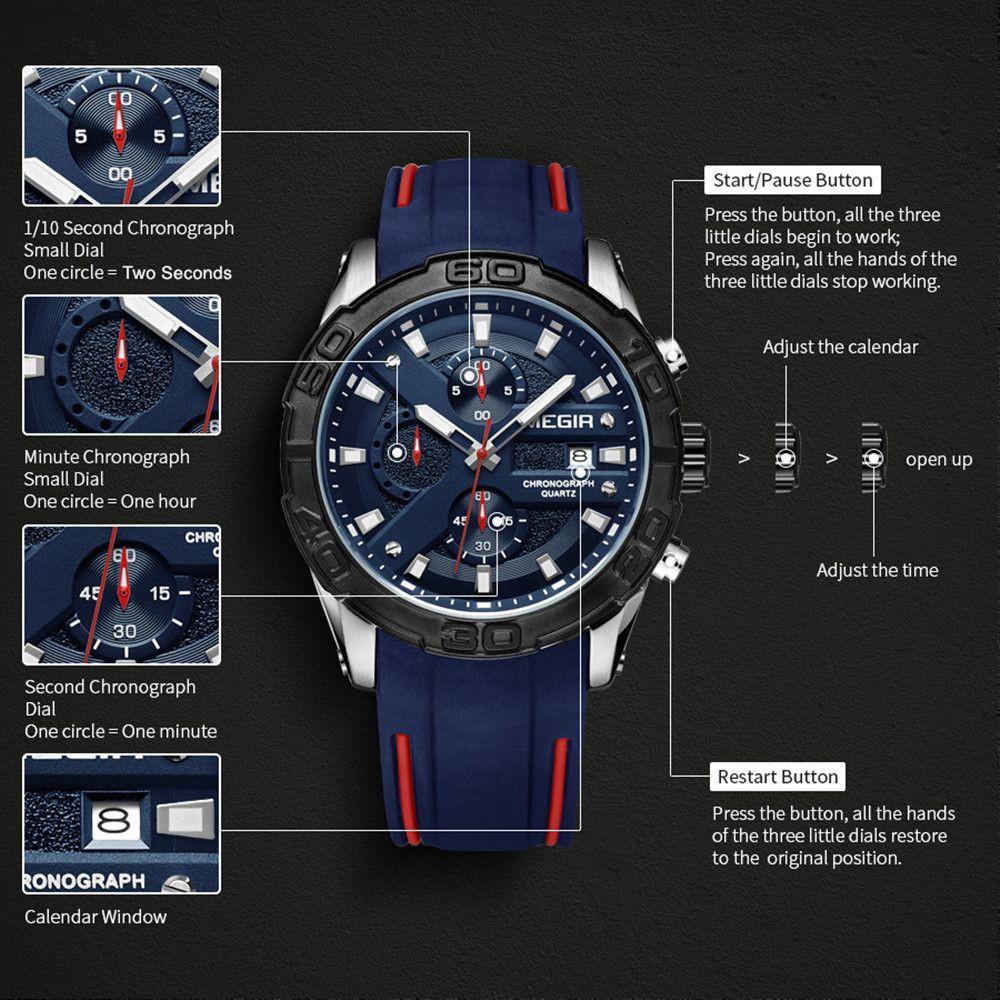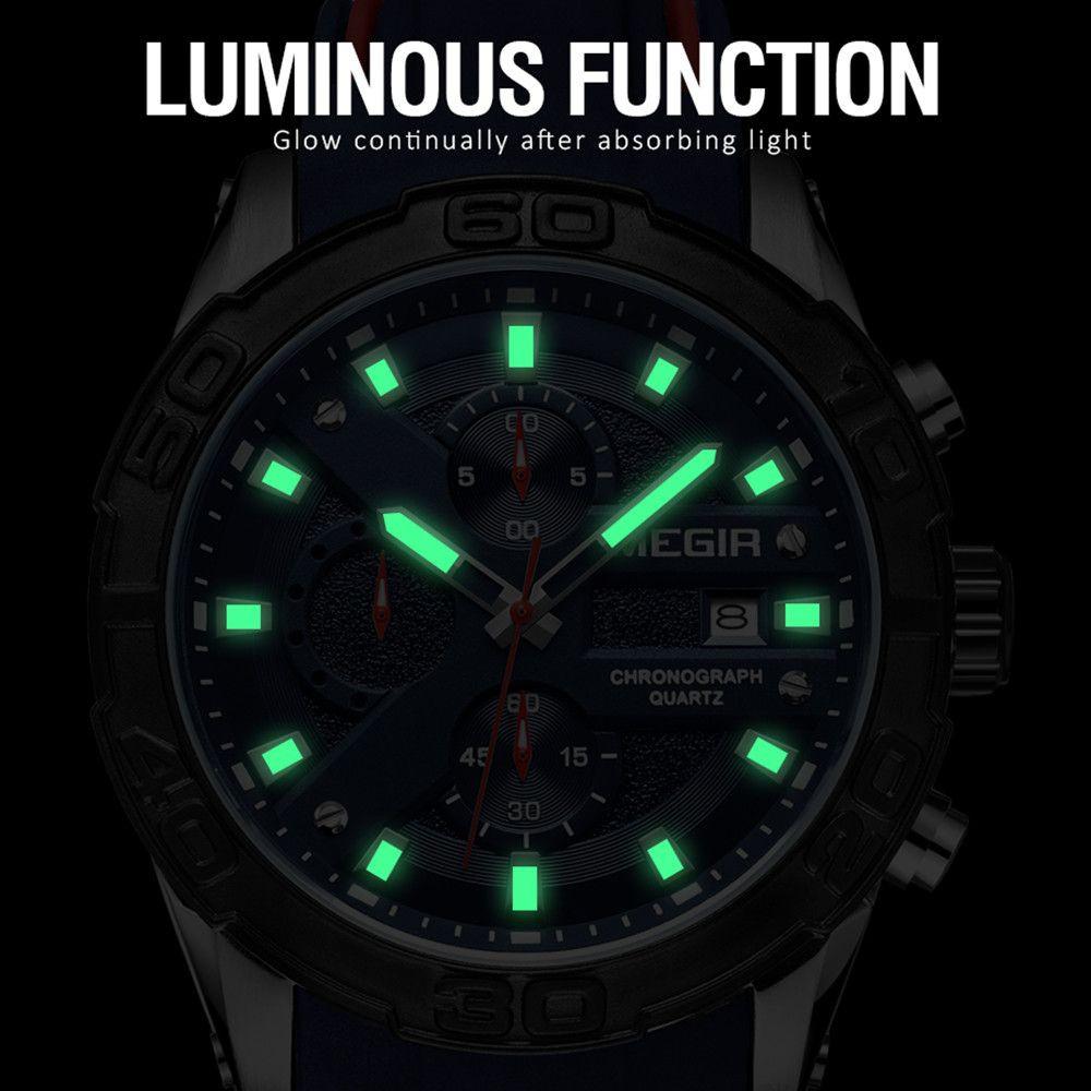 MEGIR Fashion Men's Sport Watches Silicone Strap Military Quartz Wristwatch Clock Waterproof Male Chronograph Montre Homme 2055