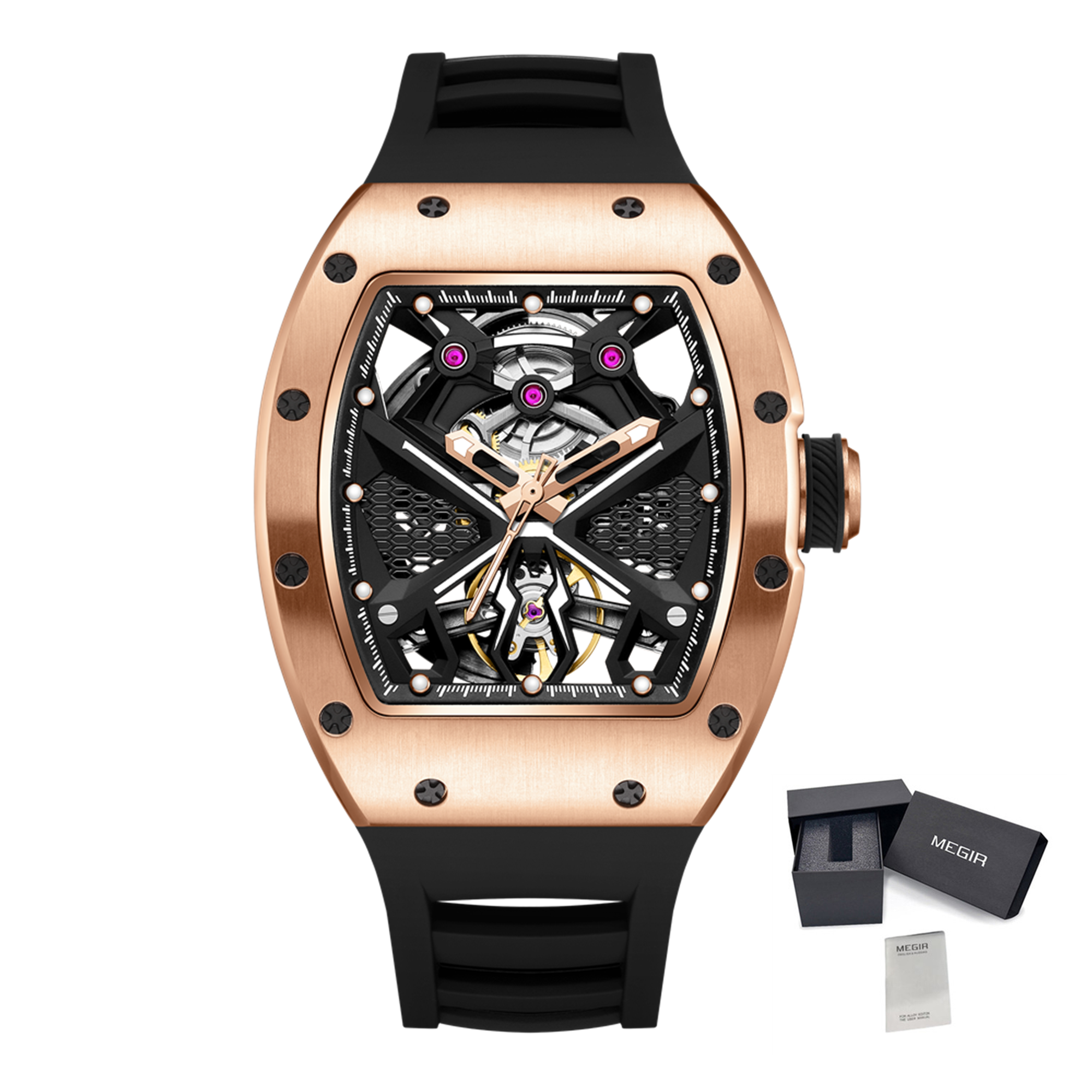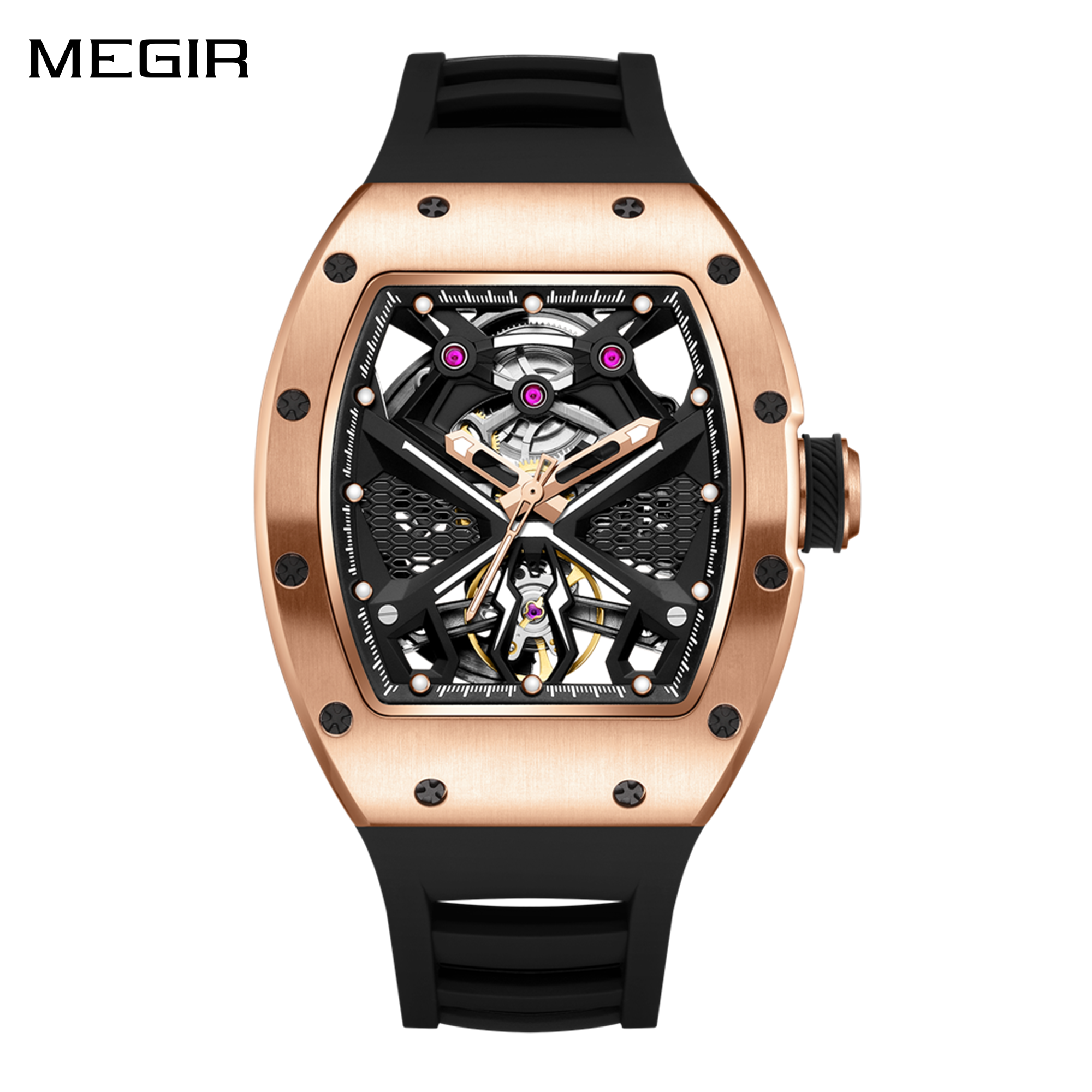 MEGIR Hollow Out Dial Men Mechanical Watch Fashion Stainless Steel Automatic Wristwatch Waterproof Watch Clock Montre Homme 9190-5
