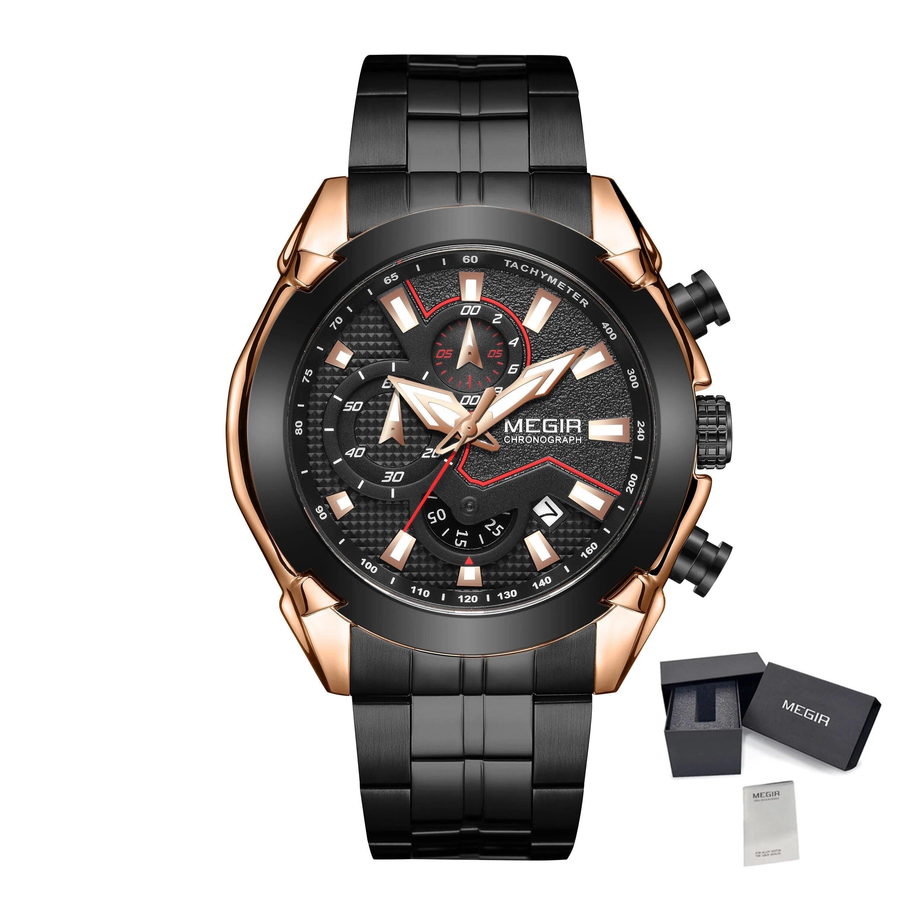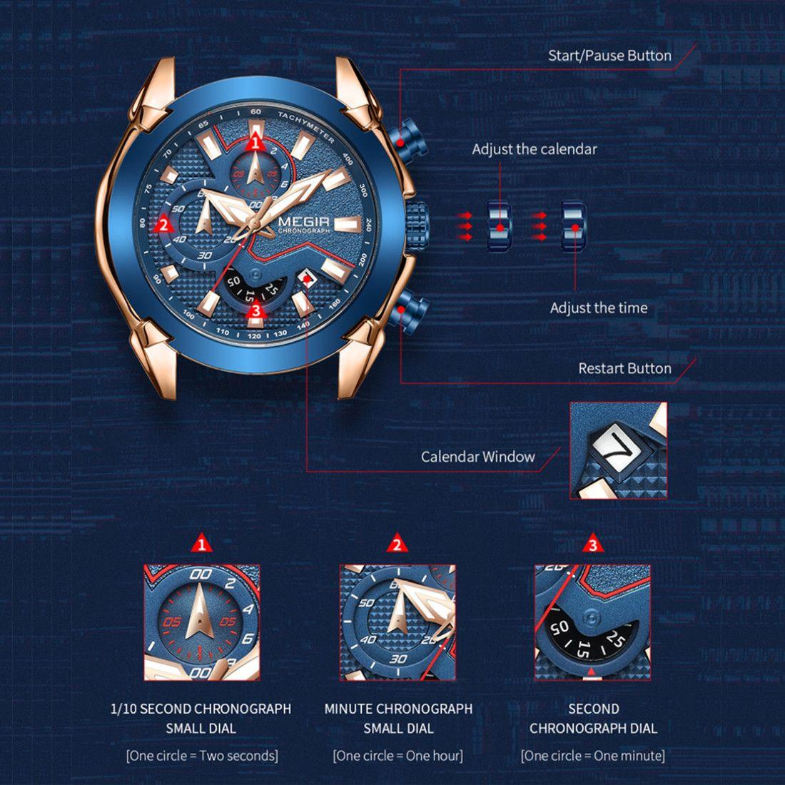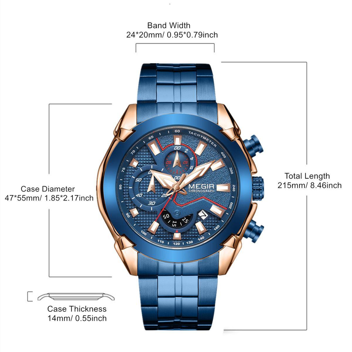 MEGIR Stainless Steel Bracelet Business Watches for Men Luxury Military Quartz Wristwatches Waterproof Luminous Clock Date 2065