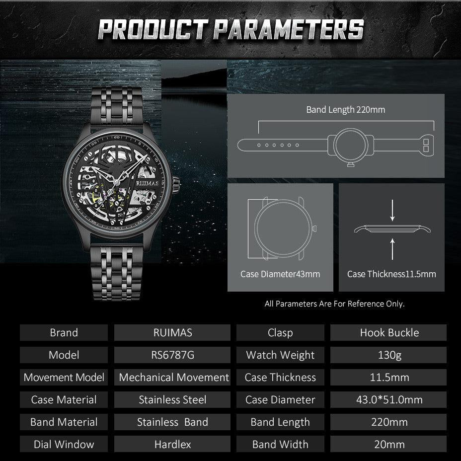 RUIMAS Watches for Men Top Brand Luxury Mechanical Chronograph Clock Stainless Steel Casual Wrist Watch Man Business Watch 6787