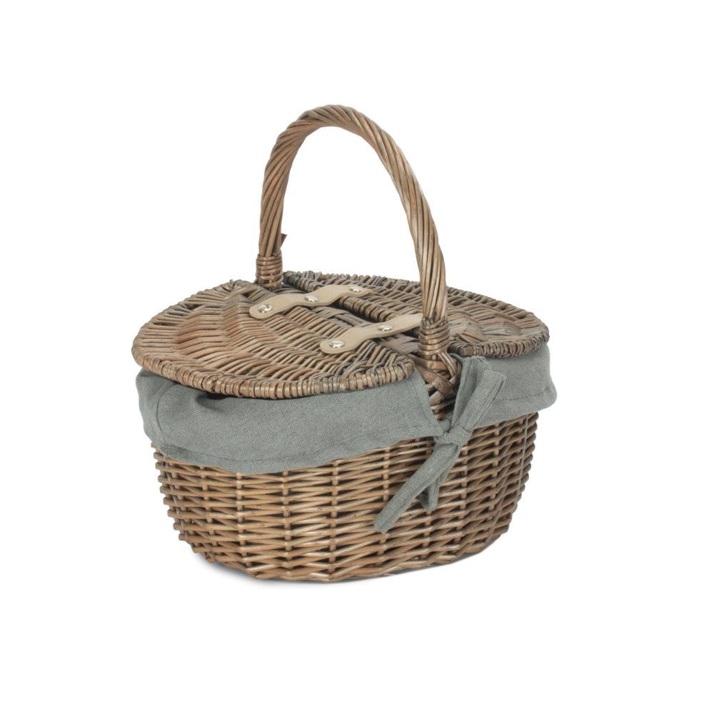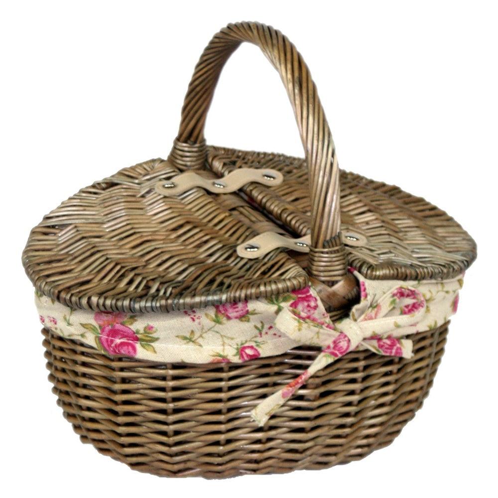 Small Antique Wash Double Lidded Oval Shopping Basket